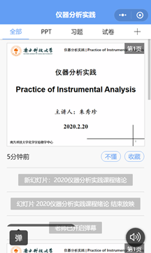 在上课的过程中,课程第一次使用了直播的方式,实时给学生讲解课程内容和沟通,例如《有机化学实验》和《无机化学实验》两门课程使用了腾讯会议,《仪器分析实践》则使用了雨课堂,直播方式的加入大大提高了课堂的效率和互动性,获得了比较好的课堂反馈,提高了教师网上教学的积极性和信心。目前化学实验的网上课程正在稳步进行中。