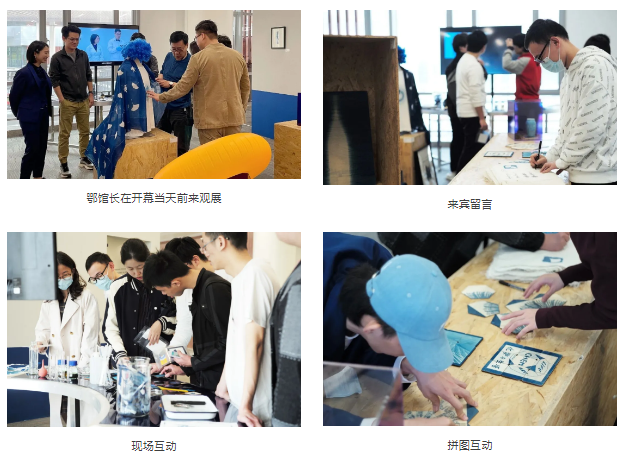 化学系蓝晒艺术展在一丹图书馆二楼开幕,图书馆鄂鹤年馆长前来观展并祝贺,表示科学与艺术的跨界融合,