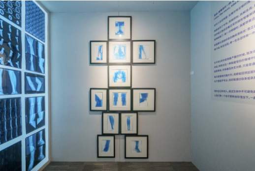 同时南科大师生和朋友捐赠了自己的X光片,我们将他们做成了X光片墙。在这个房间中,我们在捐赠的X光片中挑选出部分制作成蓝晒作品,并拼贴成人体作品。希望通过作品,表现我们对脆弱生命的思考,让观者回想起自身或亲属以往的经历,从这个作品中引起共鸣。