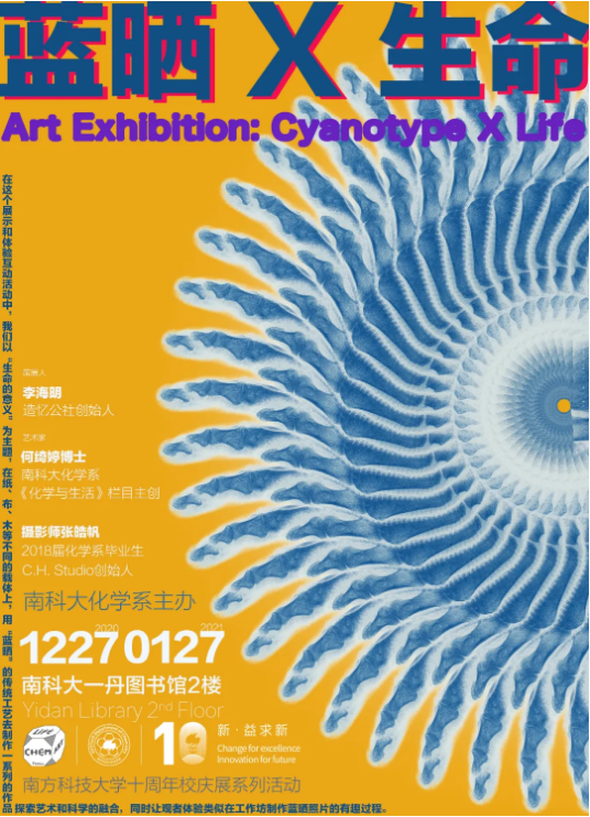 在南方科技大学十周年校庆之际,我们创作了一场化学与艺术融合的展览。通过在不同载体上创作一系列的蓝晒作品,表达我们对生命的敬畏与思考,与大家探讨生命的意义。