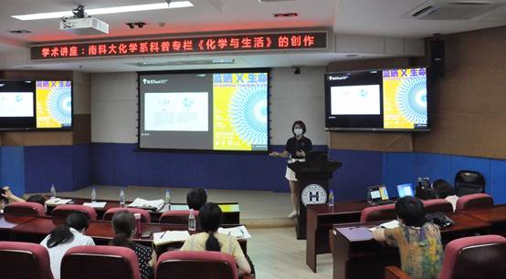 座谈会结束后,何绮婷以“南科大化学系科普专栏《化学与生活》的创作”为题作专题报告。她以科普工作为例,分享了她在教学过程中的感悟,以及如何充分发挥自身兴趣爱好精益求精完成每一个科普作品。她坦言,个人的科普创作灵感来源于教学与生活:通过和学生打成一片,了解当下年轻人关心的内容,并与学生合作完成作品;在生活中保持对艺术、历史、摄影的热爱,将生活中随处可见的事物从化学角度进行分析,并与艺术和科学相结合,从多维度解析化学,让更多人走近化学、了解化学、爱上化学。