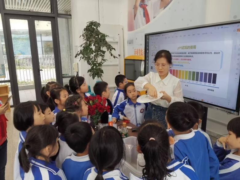 11月16日下午,化学实验教学中心房芳、颜瑷珲、王春燕和汤小菊四位老师应邀前往深圳市龙华区和平实验小学,参加其为期一周的科技节活动。在本次活动中化学实验教学中心为30名小学一年级同学带来了简单有趣的化学小实验——《绚烂多彩的花朵与酸碱指示剂》。房芳老师深入浅出地为同学们讲解了生活中常见日用品的酸碱性,导入了酸碱指示剂的概念,并通过科学家的例子鼓励同学们认真观察身边事物,积极思考,热爱科学。活动中同学们认真听讲,积极提问,在幼小的心中种下了科学的种子,和平小学领导对本次活动表示了强烈的肯定和感谢。